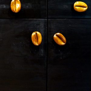 These quaint yet authentic looking ‘Coffee Bean’ door handles are handmade from ____ (material), and lacquered with ____ (type) polish. Perfect for qauiet, elegant coffee shops or rustic cafes meant forĀ  true connoisseurs, they give off a ‘coffee’ vibe even before you enter.