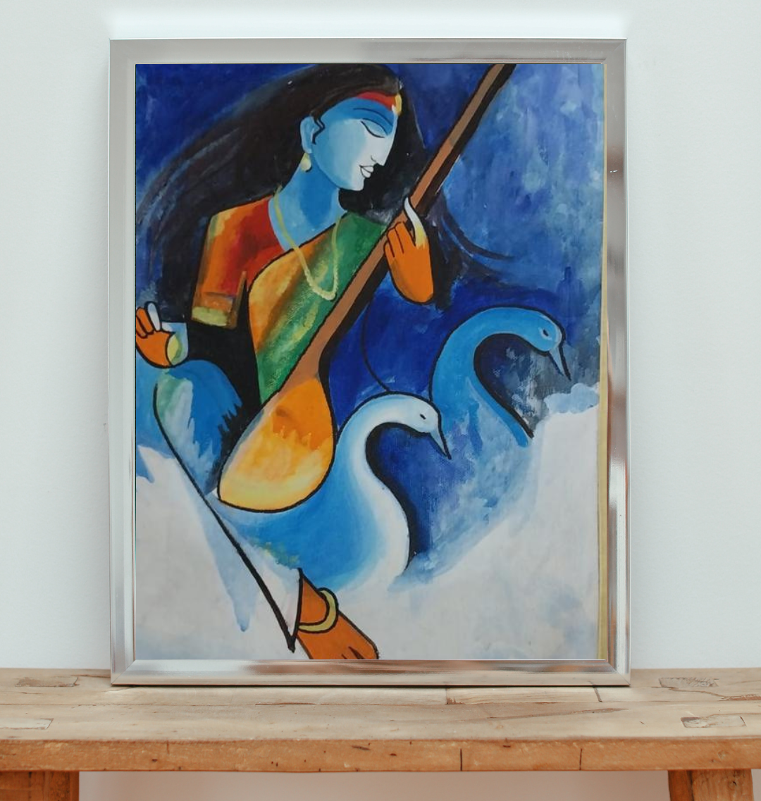 This divine masterpiece is not just a painting; it’s a reflection of faith, talent, and the boundless power of creativity. By adorning your space with “Divine Melody,” you invite the blessings of Goddess Saraswati into your home, fostering an environment of wisdom and artistic inspiration. Support Pallabi’s extraordinary journey as an artist while embracing the divine energy of knowledge and music. Bring home “Divine Melody” and let the goddess’s grace fill your space with harmony and creativity.